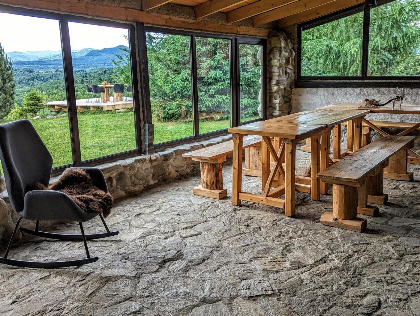 One-Bedroom Chalet. Guests will have a special experience as this chalet provides a pool with a view and a fireplace. Featuring a private entrance, this air-conditioned chalet is comprised of 1 living room, 1 separate bedroom and 1 bathroom with a walk-in shower. Guests will find a stovetop, a refrigerator, kitchenware and an oven in the well-equipped kitchen. The chalet also has a barbecue. Boasting a terrace with mountain views, this chalet also offers soundproof walls and a flat-screen TV. The unit offers 2 beds.
