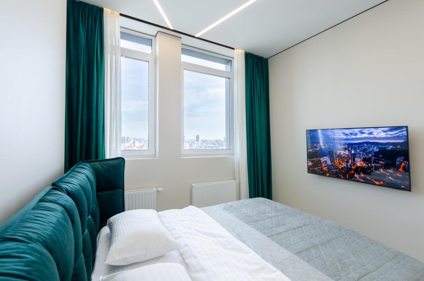 Offering city views, 34-433 in RC Manhattan City, Beresteiskyi 11, Petrovdom Apartments is an accommodation located in Kyiv, 2.4 km from St. Volodymyrs Cathedral and 2.8 km from Shevchenko Park. Free WiFi is featured throughout the property and private parking is available on site. The apartment features family rooms.